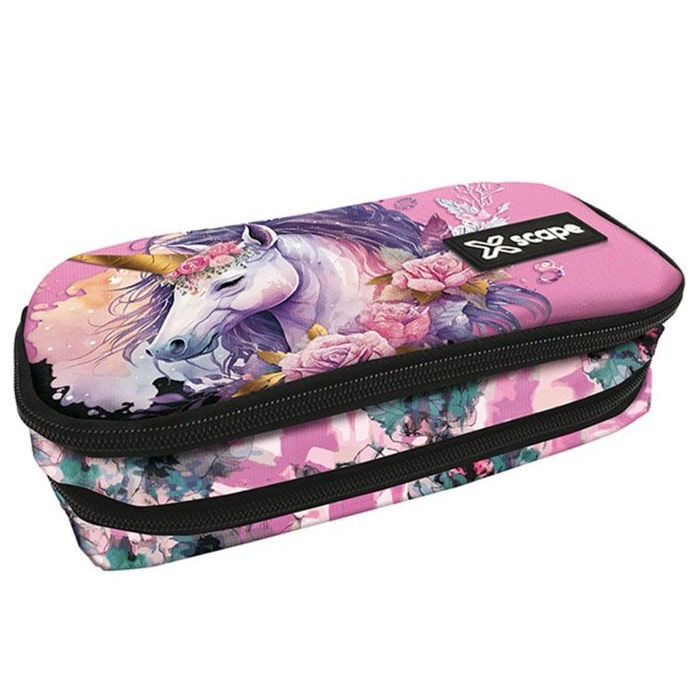 Οβάλ κασετίνα από ύφασμα της Graffiti δύο θέσεων, με φερμουάρ, πολύχρωμη.