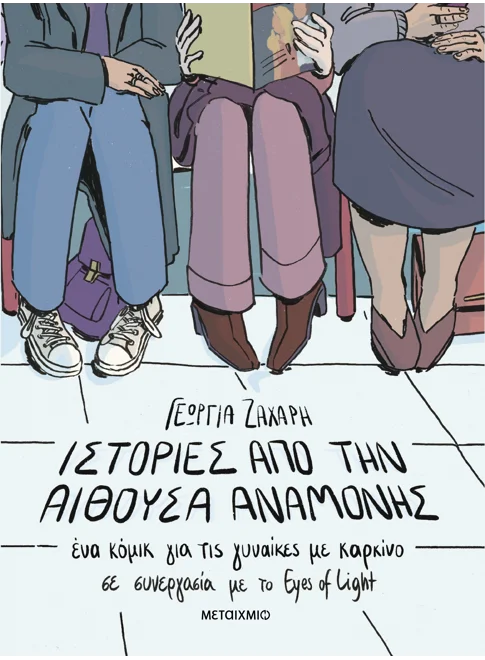 Οι Ιστορίες από την αίθουσα αναμονής βασίστηκαν σε υλικό που προέκυψε από ατομικές συνεντεύξεις με γυναίκες που νόσησαν ή νοσούν ακόμη από κάποια μορφή καρκίνου. Πολλοί και διαφορετικοί οι τρόποι που αντιμετωπίζει την ασθένεια η καθεμία από τις γυναίκες αυτές – και ο καθένας από εμάς. Στις σελίδες αυτού του κόμικ αποτυπώνονται οι φόβοι, οι ελπίδες, η αγωνία, η ανάγκη για επικοινωνία, το κλείσιμο στον εαυτό, η δημιουργία μιας κοινότητας.