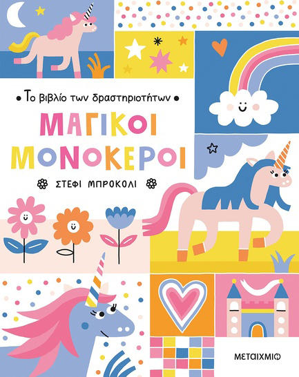 Απόλαυσε ευχάριστο και δημιουργικό χρόνο με τους αγαπημένους σου μονόκερους! Στο βιβλίο αυτό θα βρεις ευχάριστες δραστηριότητες, για να ζωγραφίσεις, να συγκρίνεις και να συμπληρώσεις εικόνες, να παίξεις με τα γράμματα και τους αριθμούς και να κάνεις κατασκευές. Με πολύχρωμες κάρτες για τα μηνύματά σου!
